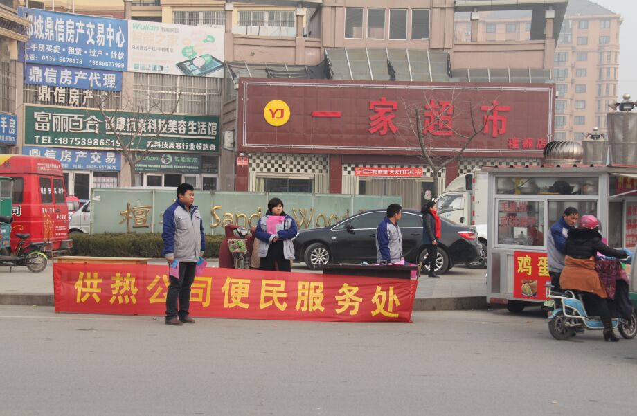 在确保供热质量好效果的基础上,为更好地服务用户,郯城公司将2016年1月定为“便民服务月”,组织全体人员通过设立便民服务点、接受用户咨询、发放宣传材料、入户维修等形式,为用户提供更加全面细致的服务,以便让更多的市民知晓用热常识,自行解决遇到的细小问题,切实减少用户报修,进一步树立企业良好外部形象。便民活动现场工作人员进小区发放宣传材料工作人员接受用户咨询