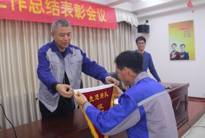 11月30日,郯城公司在四楼会议室召开月度考核总结会,并对评选出的优秀员工、先进所队配发“优秀员工”胸牌及“先进所队”流动红旗。